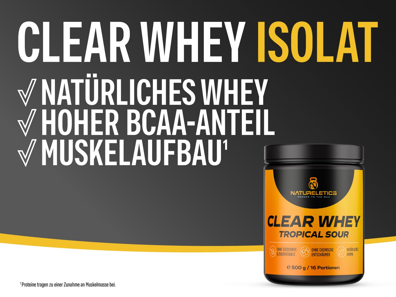 Unser NATURLETICS ISOCLEAR WHEY TROPICAL SOUR liefert dir ganze 82,6 Gramm Protein auf 100 Gramm Pulver. Gleichzeitig versorgt es dich mit hochwertigen, lebensnotwendigen Aminosäuren, die dich beim Muskelaufbau maximal unterstützen.