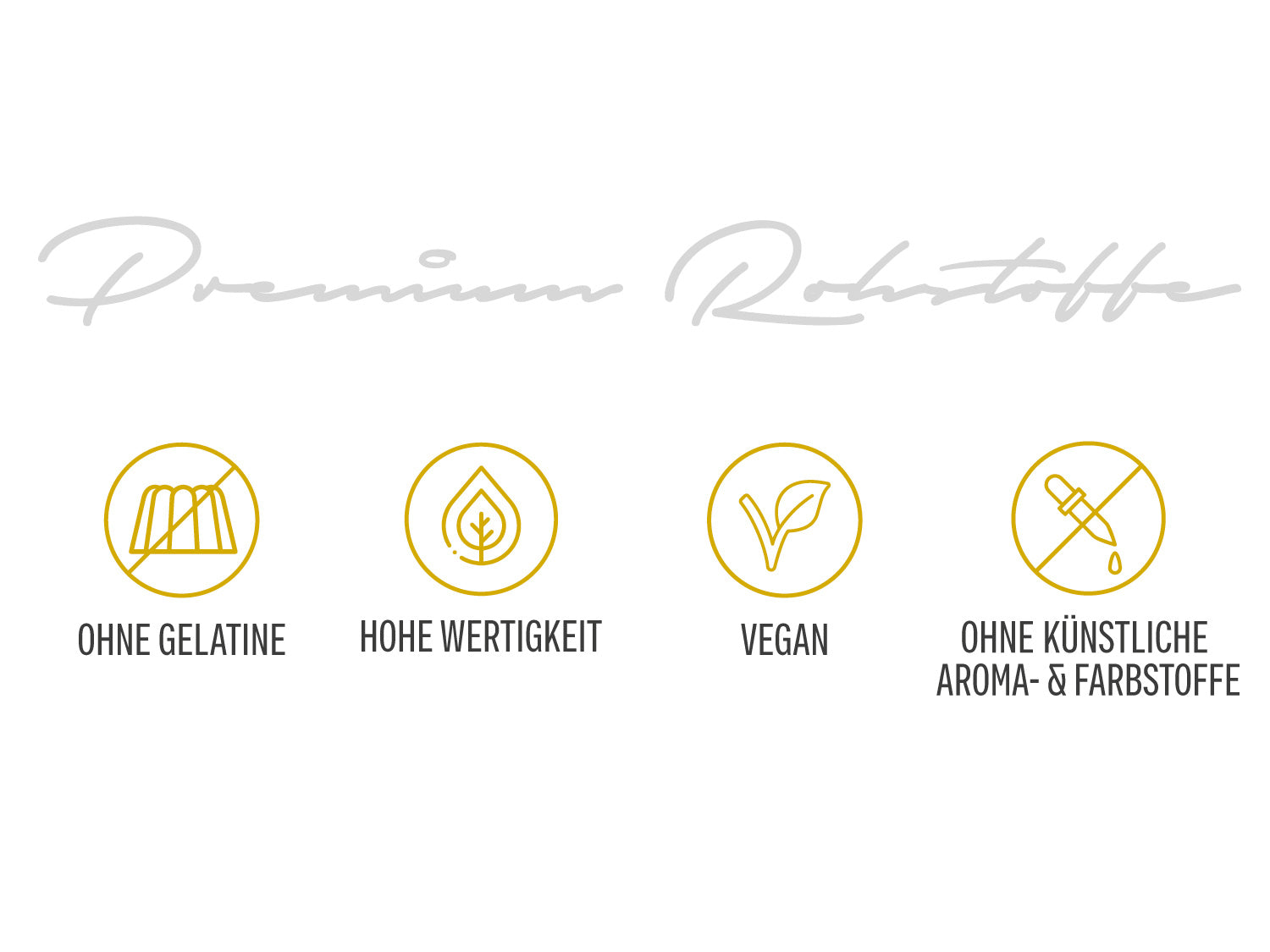 Wir verzichten auf jeglichen Zusatz von Süßstoffen aller Art, künstlichen Aromen, Geschmacksverstärkern, Verdickungsmittel und Zucker. Vegan-, Soja- und Glutenfrei. Hochwertiger premium Rohstoff, abgefüllt in Deutschland.