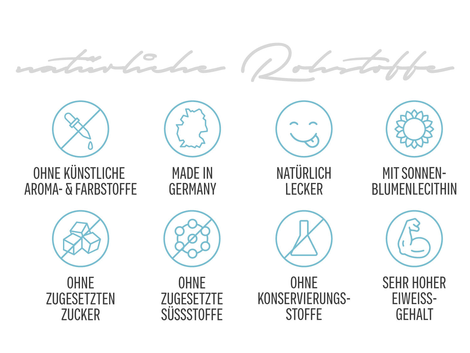 Wir finden weniger ist mehr und wir sind davon überzeugt, dass die Gesundheit deines Körpers die Voraussetzung dafür ist, auf natürlichem Weg langfristig qualitative Muskelmasse aufzubauen. Wir verzichten deshalb auf jeglichen Zusatz von Zucker, Süßstoffen, künstlichen Aromen und Geschmacksverstärker. Manchmal ist weniger einfach mehr.