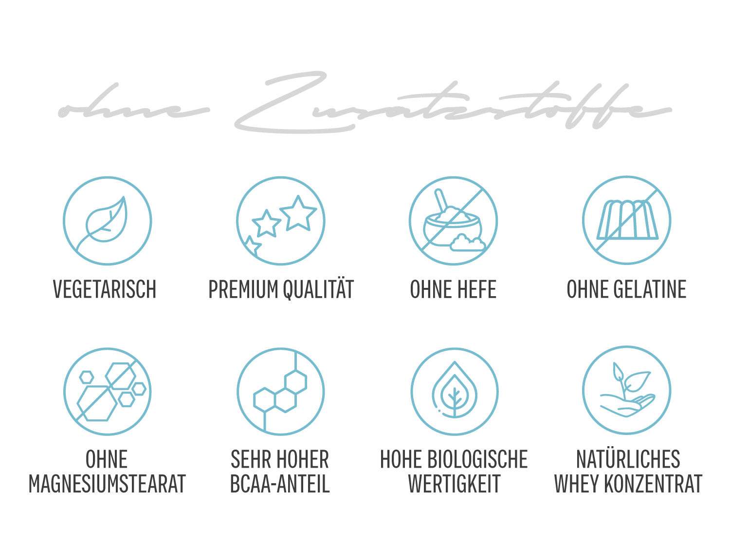NATURELETICS PURE NATURAL WHEY liefert dir 8 essentielle, also lebensnotwendige Aminosäuren, welche dein Körper selbst nicht herstellen kann.