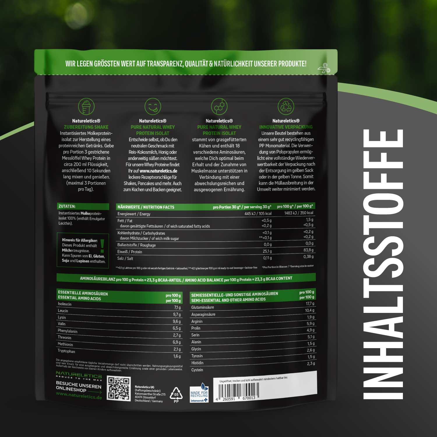 NATURELETICS PURE NATURAL WHEY ISOLAT liefert dir 8 essentielle, also lebensnotwendige Aminosäuren, welche dein Körper selbst nicht herstellen kann.
