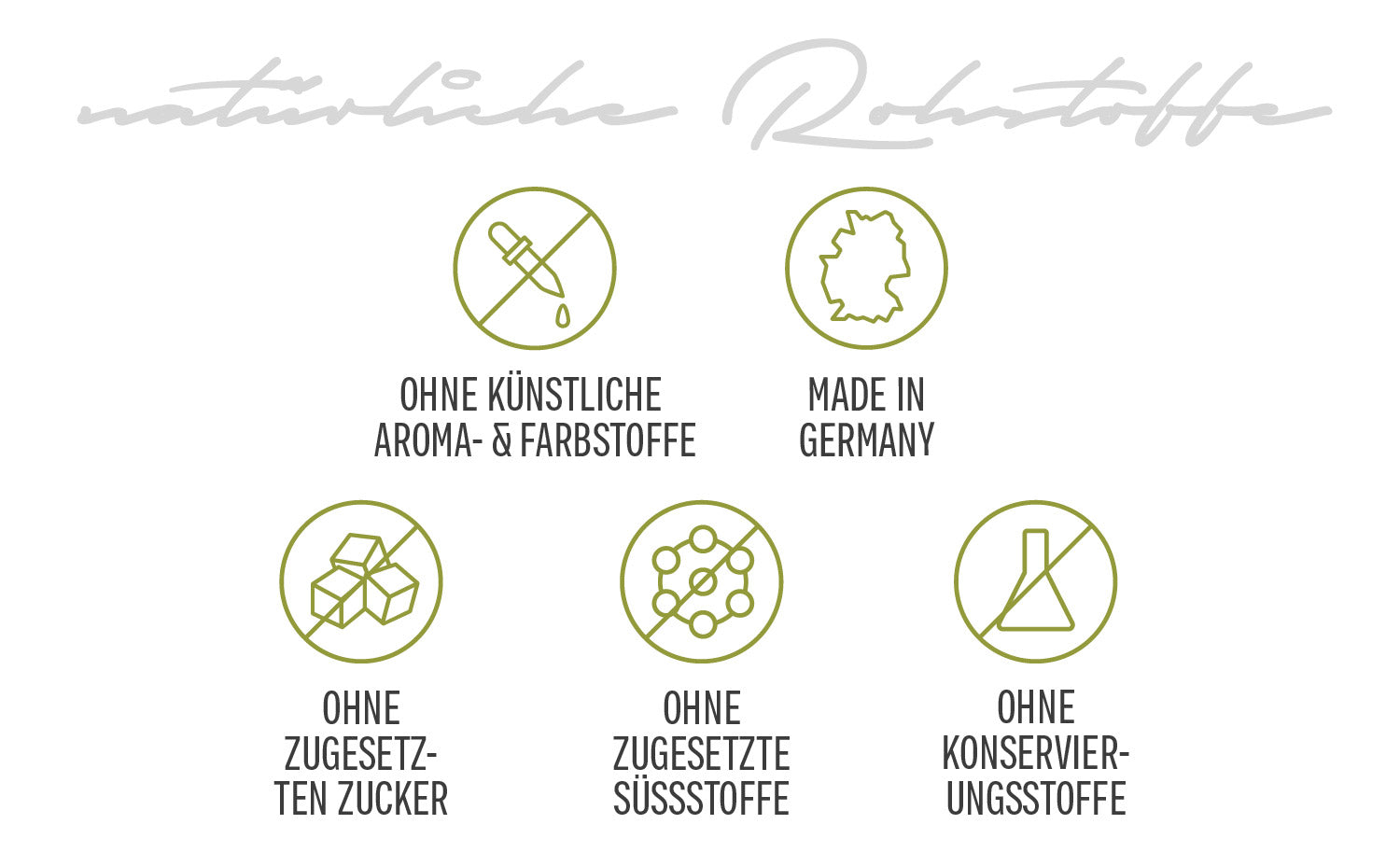 - Ohne künstliche oder pflanzliche Süßstoffe