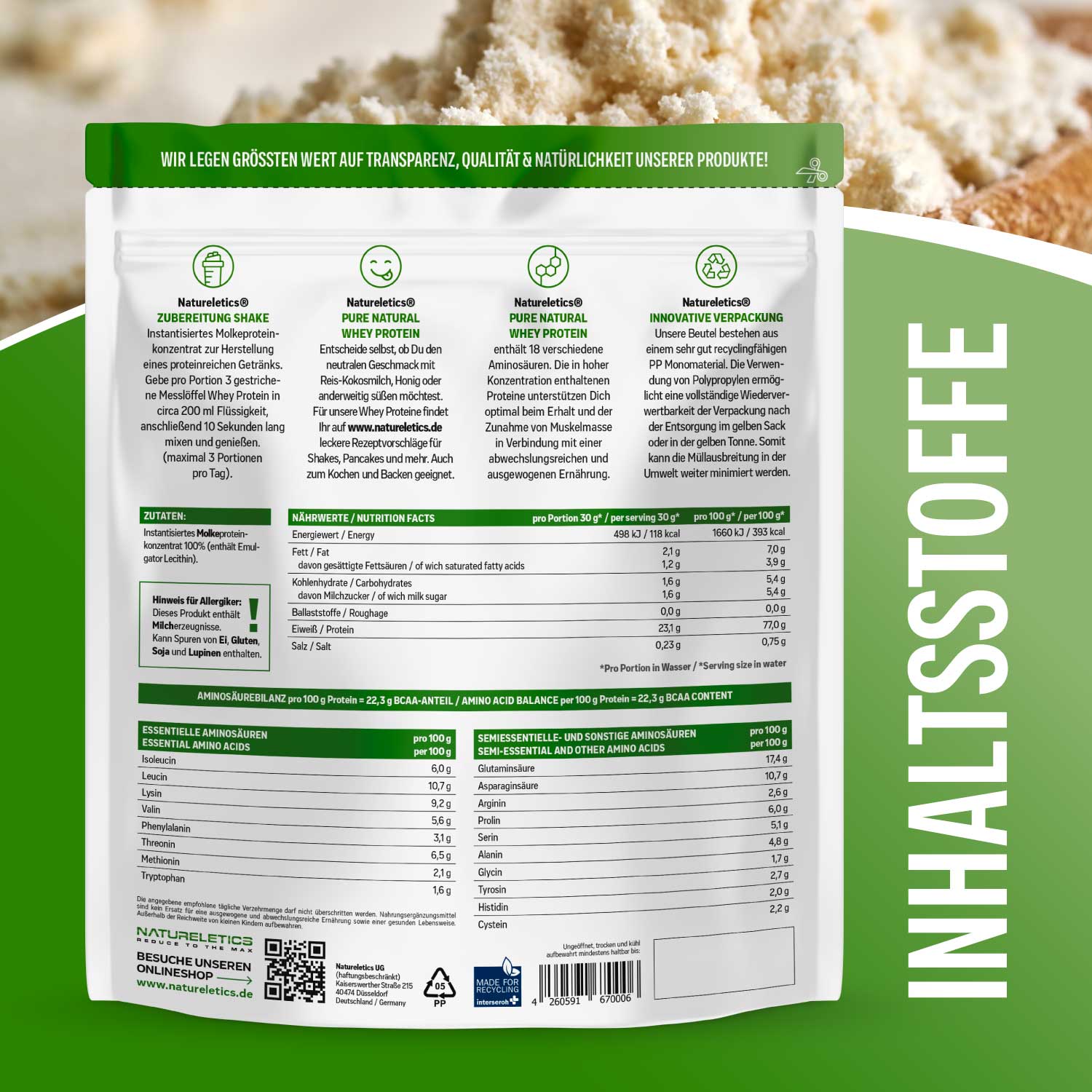 Das NATURLETICS Pure Natural Whey Konzentrat unterstützt Dich optimal dabei, Deine Fitnessziele zu erreichen - egal, ob du Muskeln aufbauen, abnehmen oder Dich einfach nur gesund fühlen möchtest.