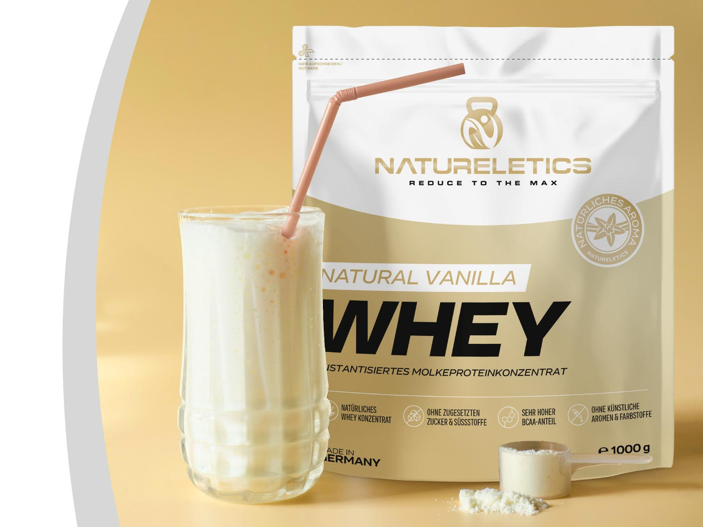 Im Rahmen einer Protein betonten Makronährstoff- Versorgung mit reduziertem Kohlenhydratanteil kann NATURELETICS WHEY PROTEIN dir dabei helfen, deinen Stoffwechsel in Verbindung mit Sport auf Hochtouren zu bringen und die gewünschte Traumfigur dauerhaft zu erreichen.